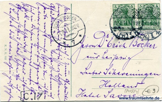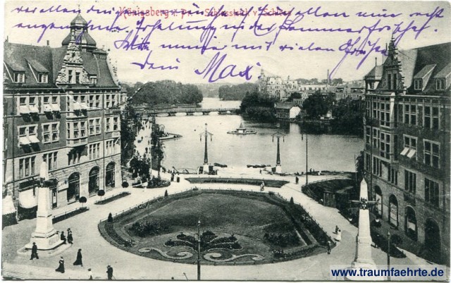 – Details – Jahr: ca. 1910 Status: gelaufen 1911 Beschriftung vorne: Königsberg i. Pr. Schlossteich v. Schloss Beschriftung hinten: K. N. K. 103, 33591 Stempel: 2x Königsberg (Pr.) 1 w, 12.8.11.9-10N; Scheveningen, * 7 *, 14.8.11.11 12V. Hinweis:
