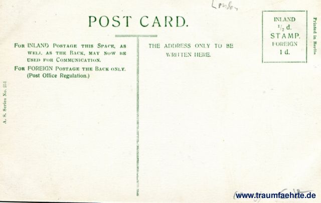– Details – Year: ca. 1900-1910 Postal state: postally unused Inscription front: Market Place, Kingston, Drewett & Sons, Nestles Milk,... Inscription back: Post Card. For Inland Postage this Space, as well as the Back, may now be used for Communication. For Foreign Postage the Back only. (Post Office Regulation). The Address to be written here. Inland ½ d. Stamp. Foreign 1 d. A. S. Series No. 251, Printed in Berlin Postmark(s): none Please note: