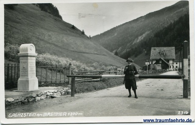 Schlagworte: Grenzen, Grenzsteine, Brenner, Pässe, Alpen, Berge, Grenzer, Schranken, Gewehre