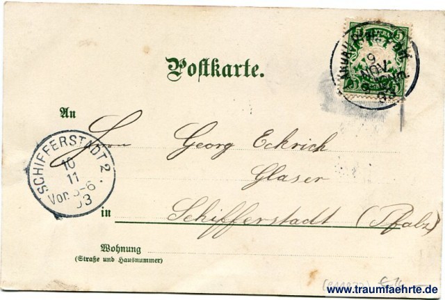 – Details – Jahr: ca. 1900 Status: gelaufen 1903 Beschriftung vorne: Luitpolddenkmal in Landau. Pfälz, Kunstpostkarte M [2]3, Verlag d. Kunstanstalt G. Darstein, Neustadt a/ Ha[...], C. Darstein Beschriftung hinten: Postkarte. An ... in ... Wohnung (Straße und Hausnummer) ... Stempel: Landau Pfalz 2[..] 19 Nov 03, 9-10 Nm.; Schifferstadt 2, 10 11 03 Vor. 5-6 Hinweis: