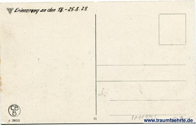 Zustand: Ecken minimal beschädigt, Rückseite etwas verschmutzt, Rückseite beschrieben obwohl ungelaufen (datiert: 18.-25.8.28), insgesamt schönes Exemplar