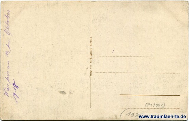 – Details – Jahr: ca. 1920 Status: ungelaufen Beschriftung vorne: Kurort Berneck (Fichtelgebirge). Beschriftung hinten: Verlag von Ferd. Albert, Berneck. Stempel: keine Hinweis: