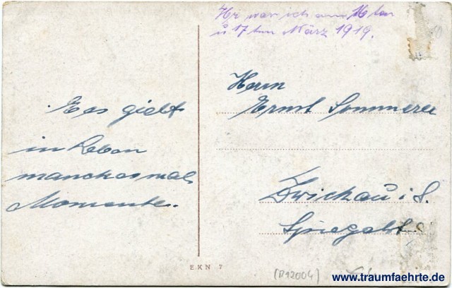 Condition: corners and edges damaged, traces of glue on back side, back side blotchy and written on although not used postally (dated: 17th March 1919)