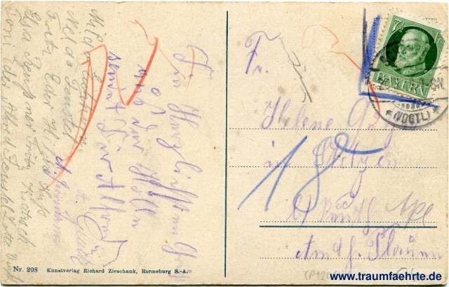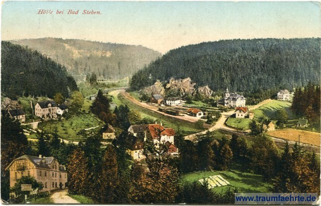 – Details – Jahr: ca. 1915 Status: gelaufen 1918 Beschriftung vorne: Hölle bei Bad Steben. Beschriftung hinten: Nr. 208 Kunstverlag Richard Zieschank, Ronneburg S.-A. Stempel: Sch[...] (Vogtl), 2[0.8.]18 7-8N. Hinweis: