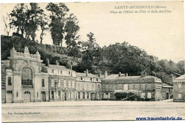 – Details – Jahr: ca. 1915 Status: ungelaufen Beschriftung vorne: Sainte-Menehould (Marne), Place de l'Hôtel-de-Ville et Salle des Fêtes, Imp. Martinet, Ste-Menehould Beschriftung hinten: Carte Postale, Le Verso (côté vue) ne doit comporter aucune inscipsion manuscrite, Partie exclusivement réservée à la Correspondance, 0 fr. 10 Stempel: keine Hinweis: