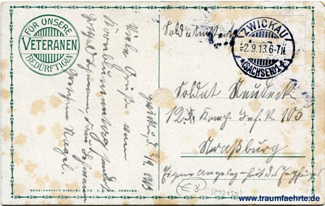 Beschriftung hinten: Für unserere Veteranen Bedürftigen, Kunstanstalt Stengel & Co. G.m.b.H., Dresden.