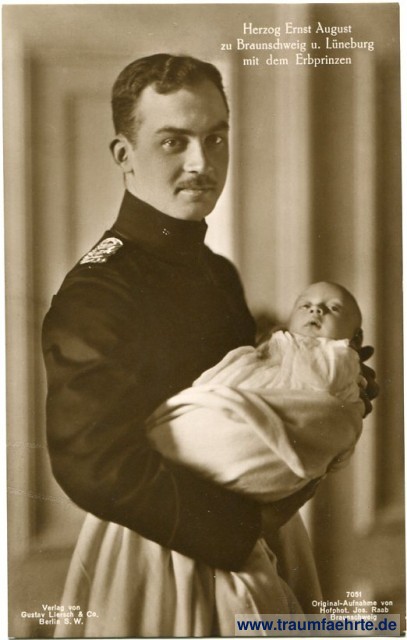 Beschriftung vorne: Herzog Ernst August zu Braunschweig u. Lüneburg mit dem Erbprinzen, Verlag von Gustav Liersch & Co. Berlin S. W. 7051 Original-Aufnahme von Hofphot. Jos. Raab, Braunschweig