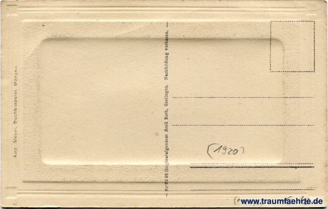 – Details – Jahr: ca. 1920 Status: ungelaufen Beschriftung vorne: Wangen-Untertürkheim, Lindenschule Beschriftung hinten: Nr 2285 Originaleigentum Emil Roth, Esslingen. Nachbildung verboten. Aug. Siegl, Buchbinderei, Wangen Stempel: keine Hinweis: