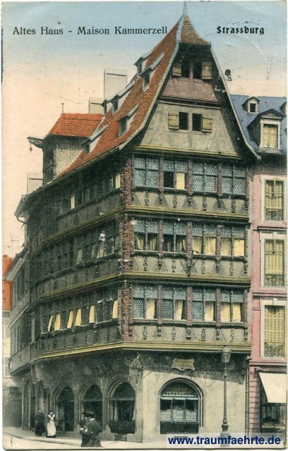 – Details – Year: ca. 1910 Postal state: postally used 1912 Inscription front: Altes Haus – Maison Kammerzell, Strassburg, Weinstube, Wirtskeller Inscription back: Georg Hoffmann, Kunstverlag Strassburg i. Els. 56 Postmark(s): Strassb[urg] (Els.), *, -2.1.12.8-9[...] Please note: