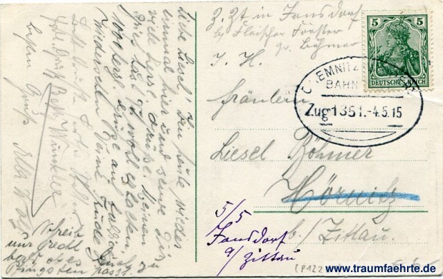 Stempel: Chemnitz – Weipert, Zug 1351.-4.5.15