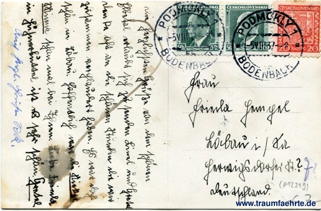 – Details – Jahr: ca. 1935 Status: gelaufen 1937 Beschriftung vorne: Tetschen-Bodenbach a. E. Beschriftung hinten: kein Text Stempel: 2x Podmokly 1, Bodenbach, 5b, -5.VIII.37-8 Hinweis: