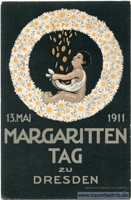 – Details – Year: 1911 Postal state: postally used 1911 Inscription front: 13. Mai 1911, Margaritetentag zu Dresden, Kunstanstalt Stengel & Co. G.m.b.H Dresden Inscription back: Postkarte Postmark(s): Dresden-Altst. 18, [...], 13.5.11 10-11N Please note: