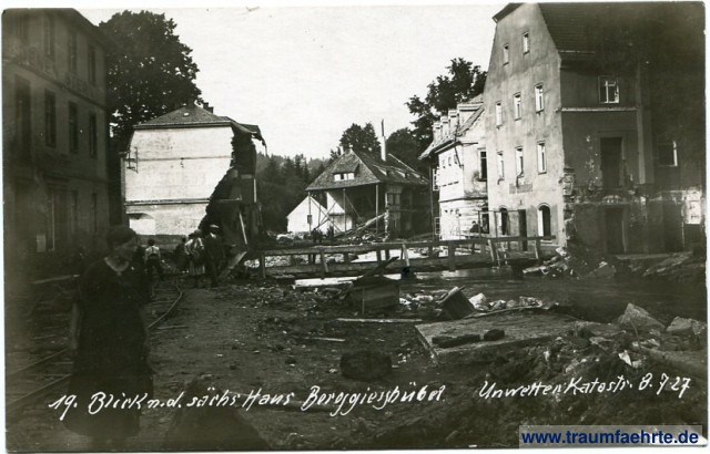 Beschriftung vorne: 19. Blick n.d. sächs. Haus, Berggießhübel. Unwetter Katastr. 8.7.27