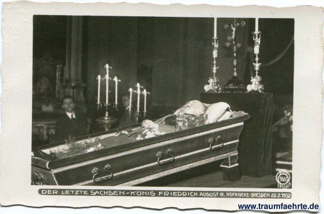 Beschriftung vorne: Der letzte Sachsen-König Friedrich August III. Hofkirche – Dresden 22.2.1932, Hahn 9667, Dresden