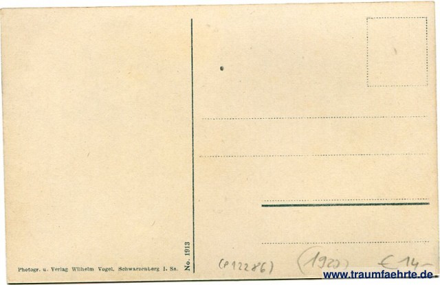 – Details – Year: ca. 1920 Postal state: postally unused Inscription front: Etablissement Panorama, Niederschlema, an der Flossgraben Promenade i. Erzgb. Inscription back: No. 1913, Photogr. U. Verlag Wilhelm Vogel, Schwarzenberg i. Sa. Postmark(s): none Please note: