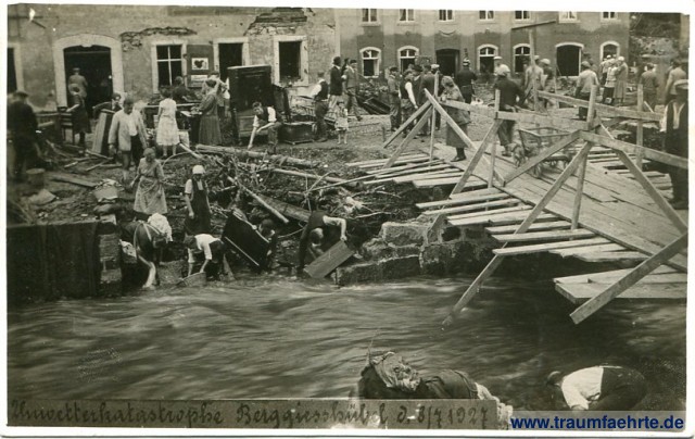 Beschriftung vorne: Unwetterkatastrophe Berggießhübel d. 8/7 1927