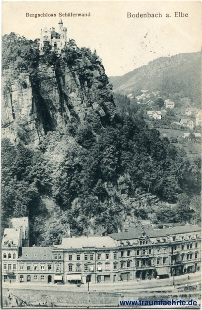 – Details – Year: ca. 1910 Postal state: postally used 1913 Inscription front: Bodenbach a. Elbe, Bergschloss Schäferwand Inscription back: 372 Kunstverlag Alwin Keil, Dresden-A. Postmark(s): Bodenbach 1, -3.V.13- Please note: