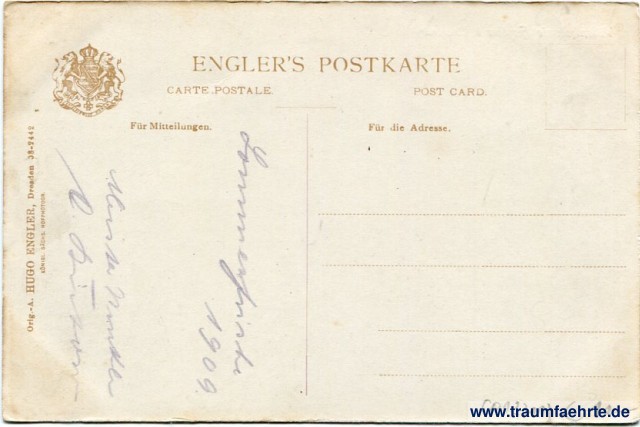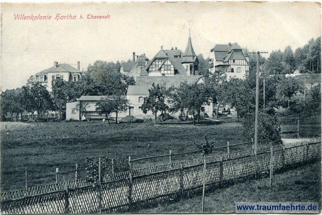 – Details – Jahr: ca. 1905 Status: ungelaufen Beschriftung vorne: Villenkolonie Hartha b. Tharandt Beschriftung hinten: Engler's Postkarte, Carte postale, Post card, Für Mitteilungen, Für die Adresse, Orig.-A. Hugo Engler, Dresden 38-2442, Königl. Sächs. Hofphotogr. Stempel: keine Hinweis: