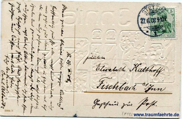 – Details – Jahr: ca. 1905 Status: gelaufen 1908 Beschriftung vorne: Innige Grüsse Beschriftung hinten: 2094/5 Stempel: Stettin, * 1 [S], 27.6.08.9-10V. Hinweis: