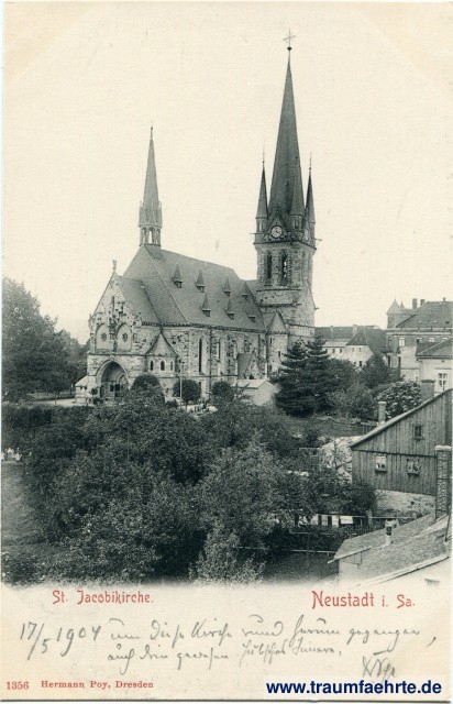 Beschriftung vorne: Neustadt i. Sa. St. Jacobikirche. 1356 Hermann Poy, Dresden