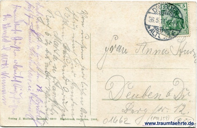 Beschriftung hinten: Verlag J. Morlock, Dresden, 5032, Nachdruck verboten. 1908.