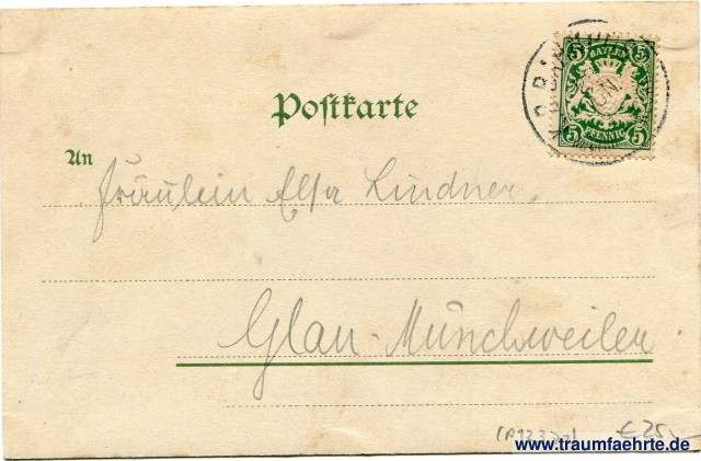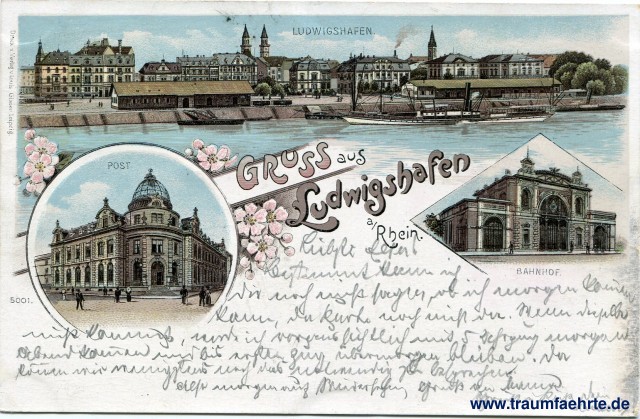 – Details – Jahr: ca. 1895 Status: gelaufen 1897 (Bahnpost) Beschriftung vorne: Gruss aus Ludwigshafen a/ Rhein. Ludwigshafen. Post, Bahnhof. 5001. Beschriftung hinten: Postkarte, An ... Stempel: Bahnpost [...], 28 Jun 97 Hinweis: