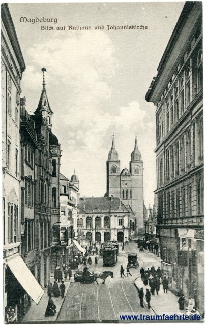 Beschriftung vorne: Magdeburg, Blick auf Rathaus und Johanniskirche
