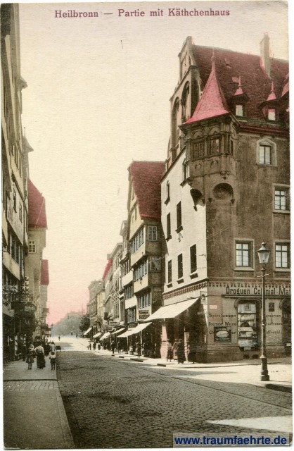 – Details – Jahr: ca. 1920 Status: ungelaufen Beschriftung vorne: Heilbronn – Partie mit Käthchenhaus Beschriftung hinten: Postkarte. Graph. Verl.-Anst. G. m. b. H., Dresden-Blasewitz, 02134 M Stempel: keine Hinweis: