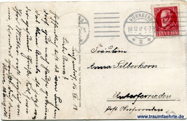 – Details – Year: ca. 1915 Postal state: postally used 1916 Inscription front: Zirndorf. Hauptstrasse. Inscription back: Echt Photokromie Postk. No. 983. Original Eigent. Franz Stöger, Nürnberg. Postmark(s): 1½x Nürnberg, * 2 *, 18.12.18 6-7; --- Please note: