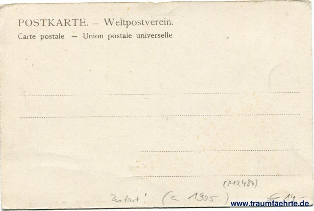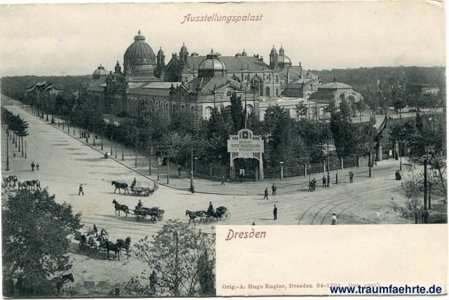 – Details – Jahr: ca. 1905 Status: ungelaufen Beschriftung vorne: Dresden, Ausstellungspalast, Orig.-A. Hugo Engler, Dresden 04-1208, Ges. gesch., Grosse Kunst Ausstellung Dresden, 1. Mai, Eingang,... Beschriftung hinten: Postkarte. – Weltpostverein. Carte postale – Union postale universelle. Stempel: keine Hinweis: