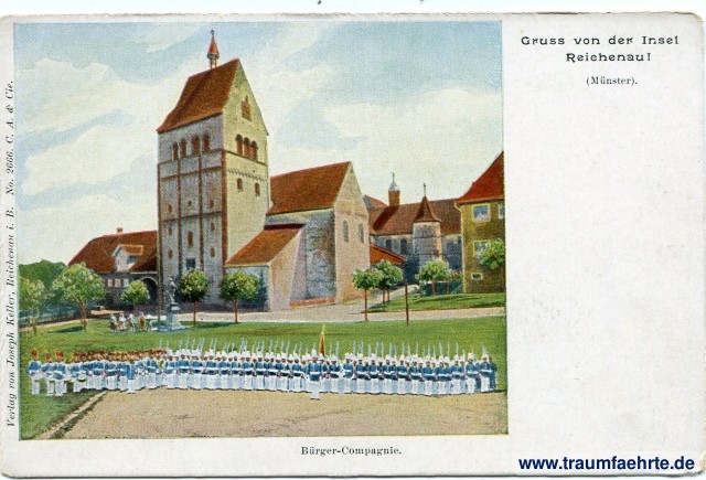 – Details – Jahr: ca. 1910 Status: ungelaufen Beschriftung vorne: Gruss von der Insel Reichenau! (Münster). Bürger-Compagnie. Verlag von Joseph Keller, Reichenau i. B. No. 2666. C. A. & Cie. Beschriftung hinten: Postkarte. An ... in ... Stempel: keine Hinweis: