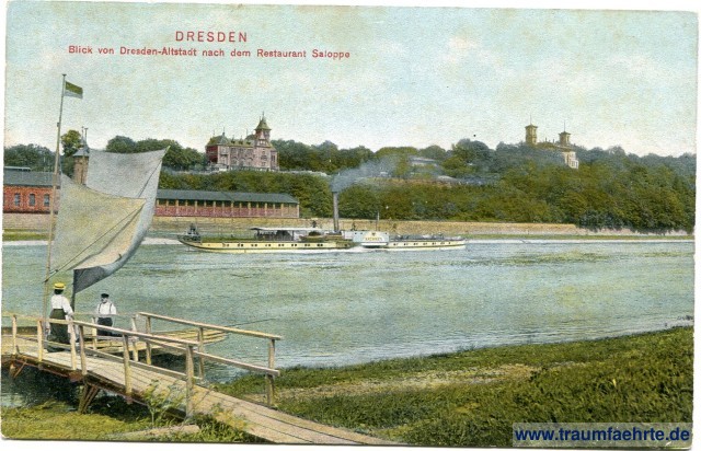 Beschriftung vorne: Dresden, Blick von Dresden-Altstadt nach dem Restaurant Saloppe