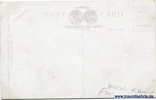 – Details – Jahr: ca. 1920 Status: ungelaufen Beschriftung vorne: The Canadian Bank of Commerce, Winnipeg, Man. 107.231. (J.K.) Beschriftung hinten: Famous V & Sons throughout the world. Post Card. Correspondence. Address only. The Valentine & Sons Publishing Co., Ltd. Montreal and Toronto. Printed in Great Britain. British Manufacture Stempel: keine Hinweis: