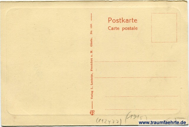 Beschriftung hinten: Postkarte, Carte postale, T Co, Verlag L. Lenheim, Frankfurt a. M. Gloria. No. 100.