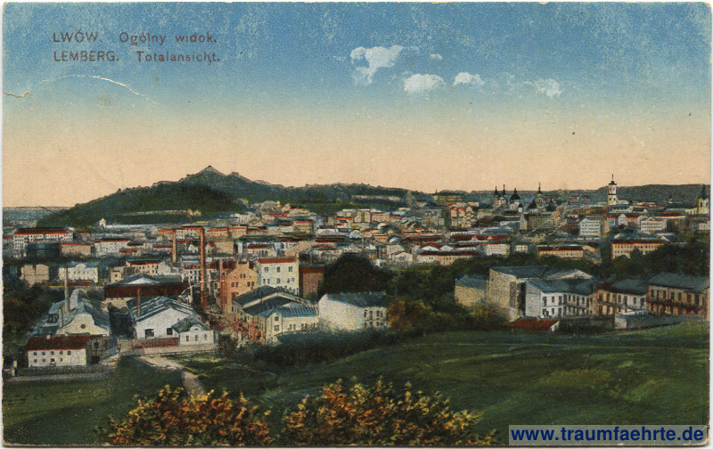 – Details – Jahr: 1917 Status: gelaufen ohne Briefmarke (Feldpost), Beschriftung vorne: Lwów. Ogólny widok. Lemberg. Totalansicht. Beschriftung hinten: Wydawnictwo Sztuka Kraków, Déposé 1917. No. 15. 93910 Stempel: Deutsche Feldpost, * * *, 21.6.17 7–8; […] Hinweis: