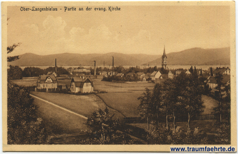 Beschriftung vorne: Ober-Langenbielau – Partie an der evang. Kirche