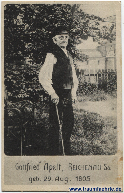 Beschriftung vorne: Gottfried Apelt, Reichenau Sa. geb. 29. Aug. 1805.