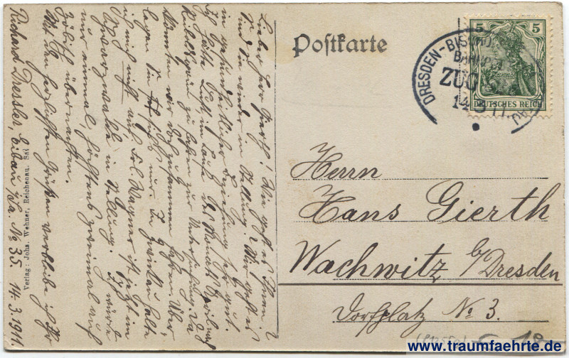 Beschriftung hinten: Postkarte, Verlag: Johs. Wehner, Reichenau. Sa.