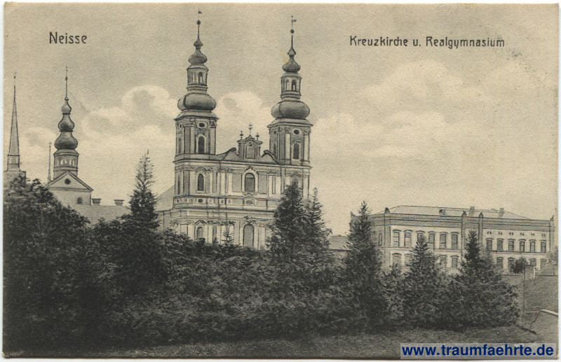 Ansichtskarte Kreuzkirche / Kościół Bożogrobców (heutige Kościół św. Piotra i św. Pawła) in Neisse / Neiße / Nysa [ Permalink ]Kategorie: Kirchen & Kathedralen