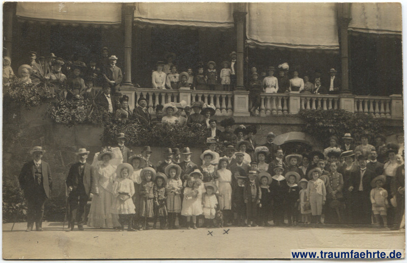 Ansichtskarte Kurhaus / Dom Zdrojowy in Bad Landeck i. Schlesien / Lądek-Zdrój / Landecke [ Permalink ]Schlagworte: Gruppenfotos, Hüte, Kurhäuser, Terrassen, Säulen, Schlesien, Ostgebiete