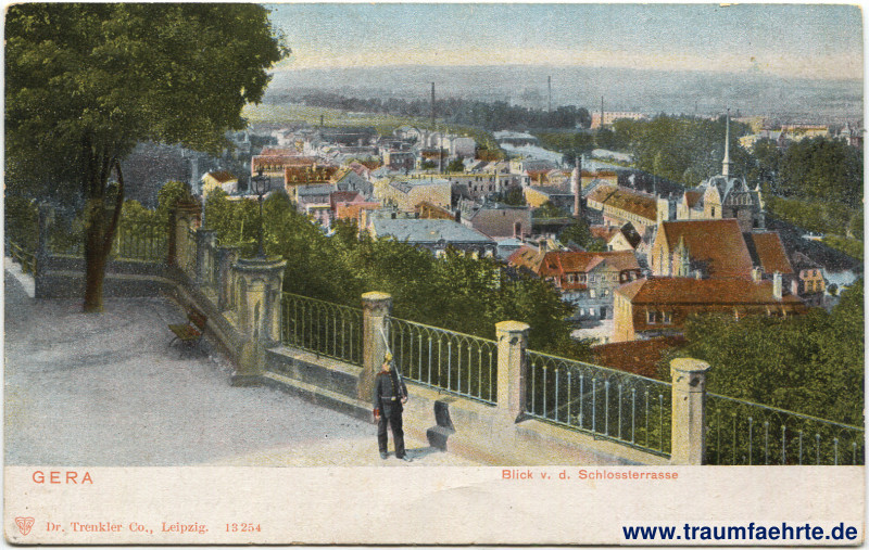 Inscription front: Gera, Blick v. d. Schlossterrasse, D T Co, Dr. Trenkler Co., Leipzig. 13 254