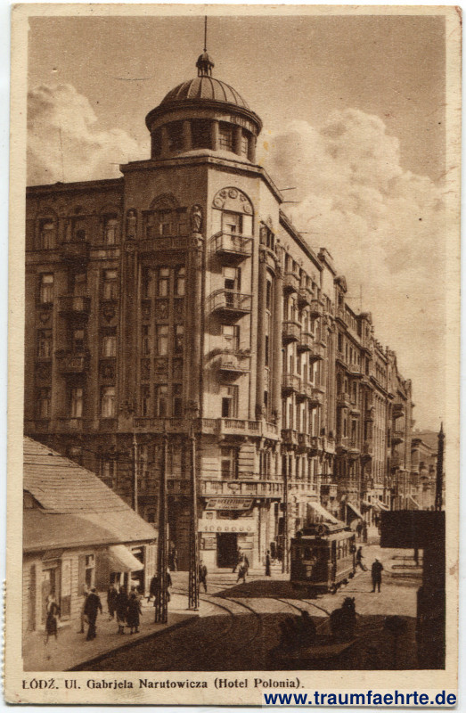 Inscription front: Łódź. Ul. Gabrjela Narutowicza (Hotel Polonia).