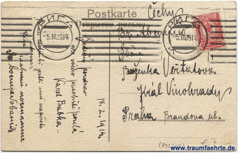 – Details – Jahr: ca. 1910 Status: gelaufen 1914 Beschriftung vorne: 31. Рига. Ратушная Площадь, Riga, Rathaus-Platz. Beschriftung hinten: Postkarte, Открытое письмо Stempel: 2x Рига, –5.III.1914; ––– Hinweis: