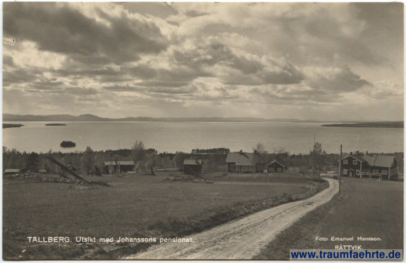 Beschriftung vorne: Tällberg. Utsikt med Johanssons pensionat. Foto: Emanuel Hansson. Rättvik.