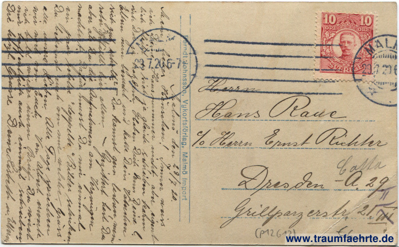Stempel: 2x Malmö, * […], 23.7.20 6–7[…]; –––