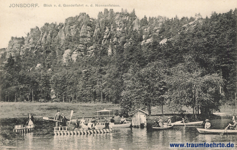 Schlagworte: Felsformationen, Felsen, Ruderboote, Gondeln, Wald, Teiche, Boote, Zittauer Gebirge