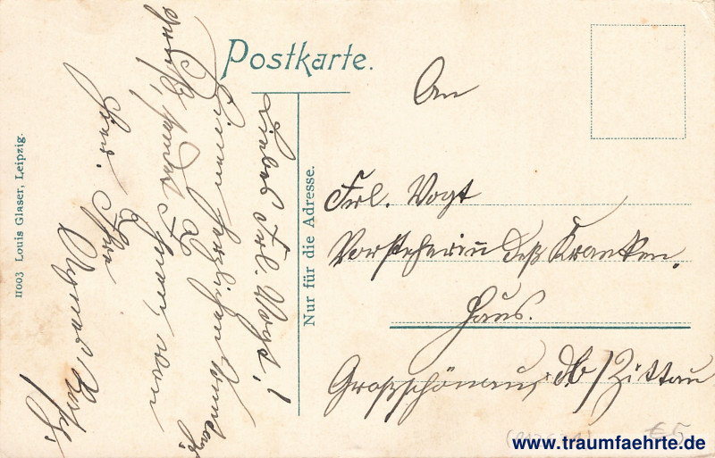 Inscription back: 11003 Louis Glaser, Leipzig. Postkarte. Nur für die Adresse.