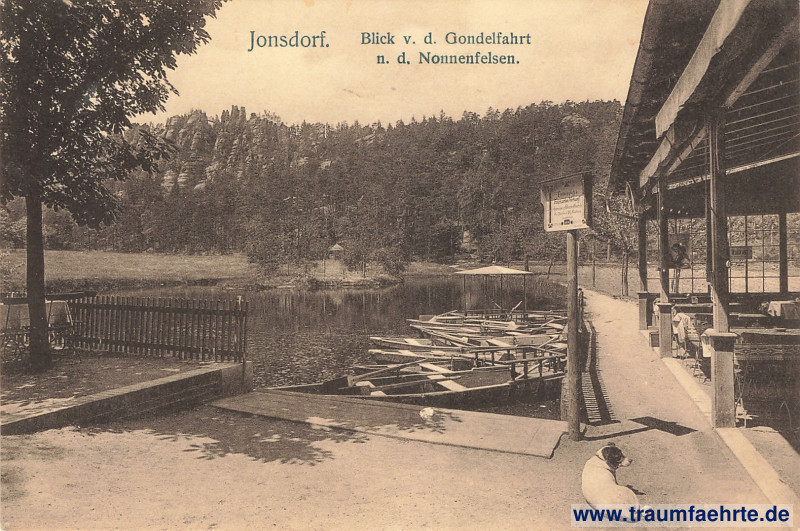 Schlagworte: Gaststätten, Hotels, Gondeln, Ruderboote, Boote, Teiche, Felsen, Felsformationen, Zittauer Gebirge, Pavillons