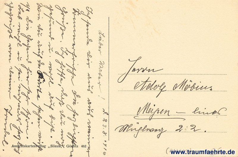 Beschriftung hinten: Ansichtskartenverlag „Silesia,“ Görlitz, 462