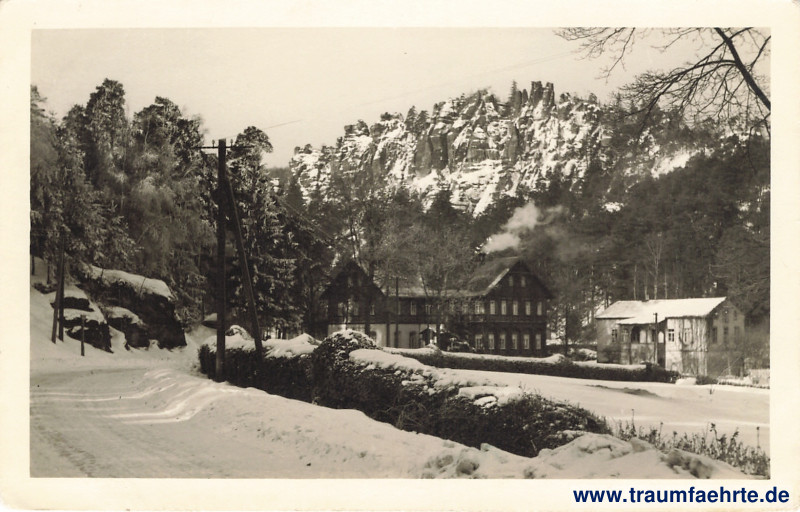 Schlagworte: Zittauer Gebirge, Kurorte, Felsen, Felsformationen, Schnee, Winter, Strommasten, Wald, DDR, Gasthäuser
